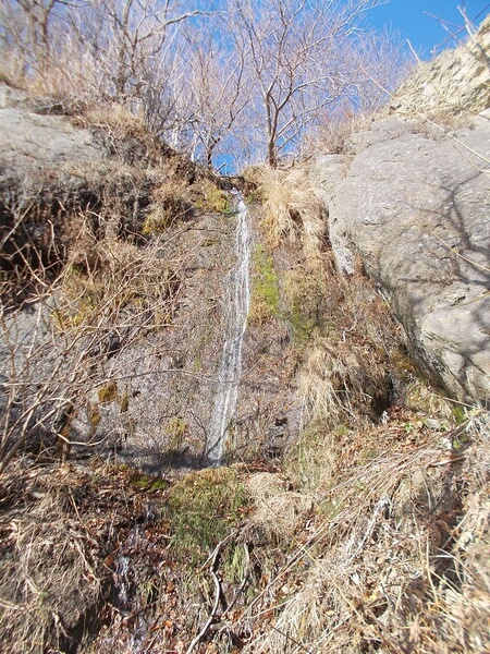 Расположен в 1,8 км восточнее устья большого ручья, протекающего через падь Нечаевку, на безымянном ручье, протекающем по склонам плато. Координаты подножия: N46°37'00.0" E142°50'47.8" высота подножия 17 м над уровнем моря. Он двухступенчатый, высота каждой ступени примерно по 3 м.