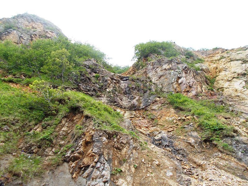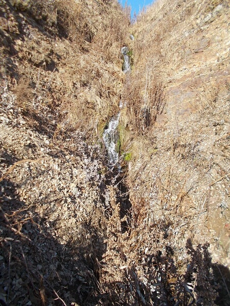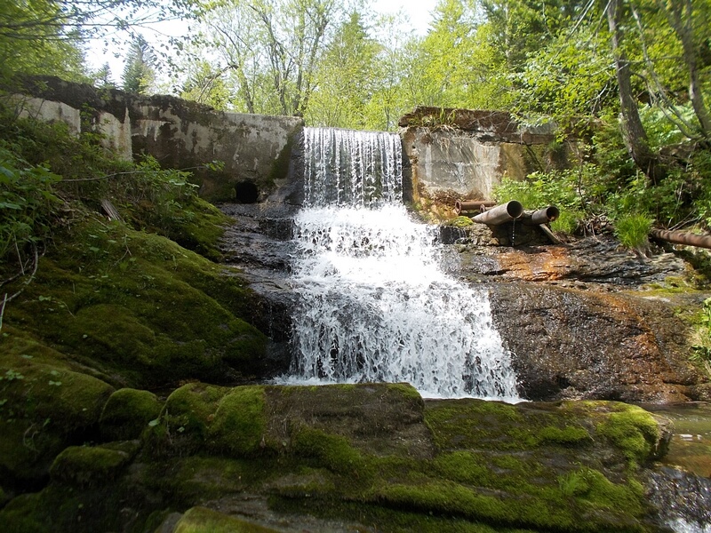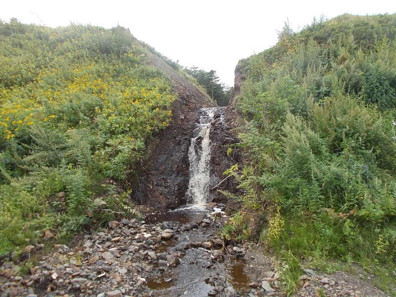 1. Интересный объект подобного рода обнаружен Валерием Хмарой и Ольгой Наседкиной 4 сентября 2016 г. при пешей прогулке по побережью залива Анива. Когда они зашли в пос. Озёрский Корсаковского района с западной стороны, то попали на территорию рыболовецкого колхоза им. С.М. Кирова. С той стороны территория не была огорожена забором, поэтому доступ на неё был свободным. И на небольшом ручье, протекающем на той территории, они обнаружили... небольшой, но по-своему красивый водопад! Находившийся вблизи сотрудник колхоза пояснил, что раньше тот ручей тёк по-другому: правее, если смотреть вверх по течению. Впоследствии его русло отвели, на склоне бугра прорыли выемку, с которой и стекает тот водопад.